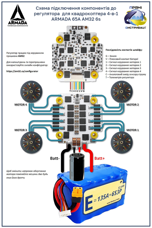 Регулятор 4-в-1 ARMADA 65A AM32 6s