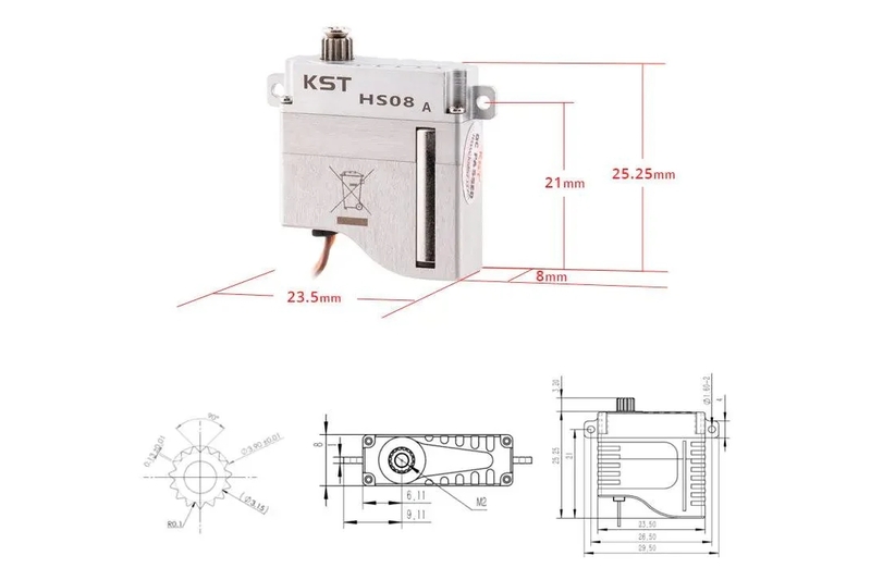Сервопривод для планеров 11г KST HS08A 5,2кг/0,11сек 15T цифровой